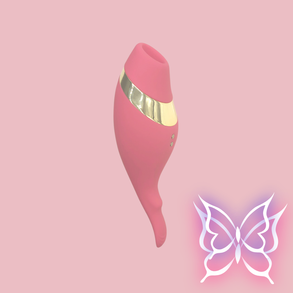 Meet your match with The Adventurer, an exclusive invitation to pleasure. This expertly crafted accessory allows you to explore new dimensions of desire with different types of clitoral stimulation. Set in premium silicone, the gold accent adds a luxe touch while the rounded shape fits perfectly in hand. Let the textured end tantalize with multiple vibration speeds and patterns or fit the accessory's opening around the clitoris for air pressure that takes your breath away. Rechargeable and Shower Friendly, do not submerge.