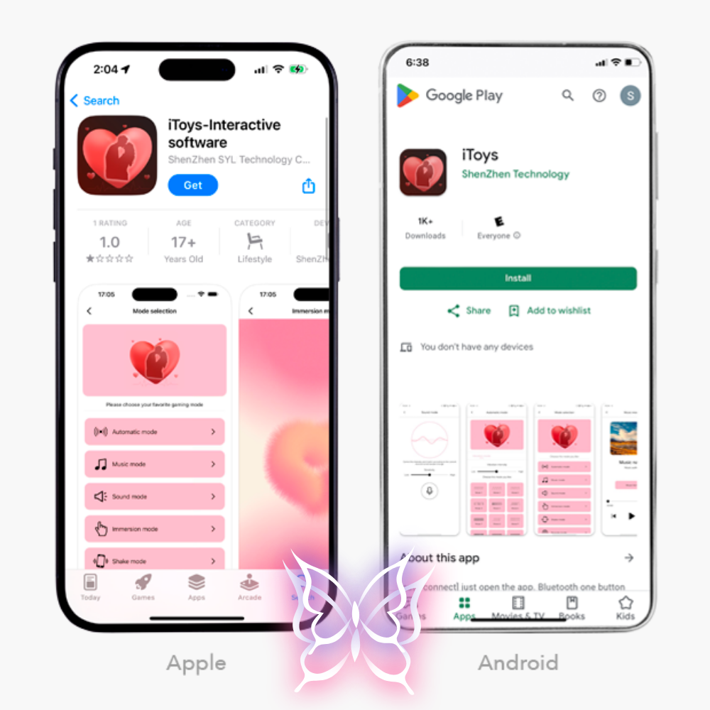 Using the massager & app: Search “iToys” in the Google Play or App Store to find and download the app. Hold massager button for 3 seconds; light turns on to indicate standby mode. Connect the toy to the app via Bluetooth using the Product Code found on the packaging and the included insert. To cycle through functions, use the app. To turn off, hold massager button for 3 seconds.