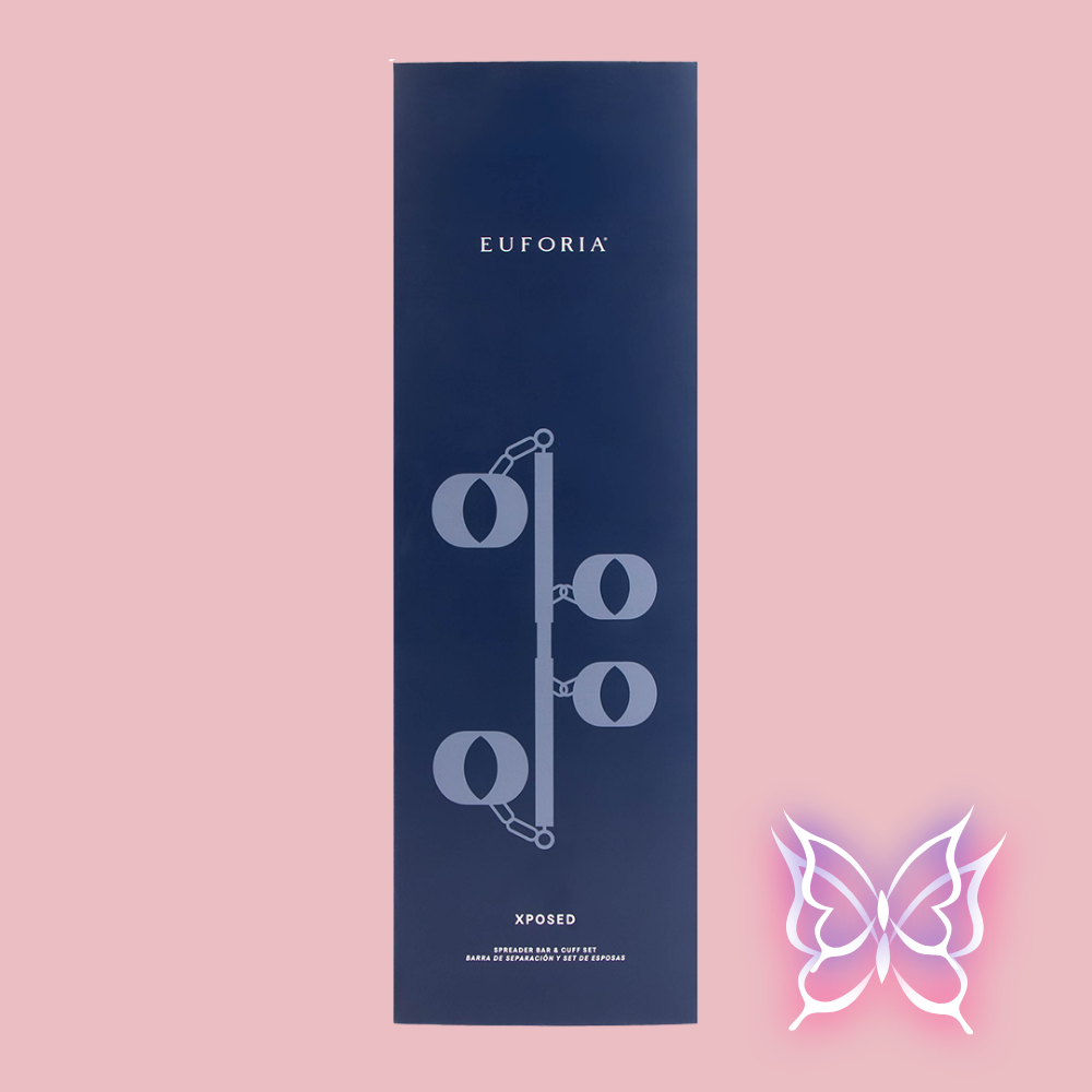 This expandable spreader bar features four flexible fabric cuffs and a sturdy metal construction. Each removable cuff has a velvet lining and a secure hook and loop closure for customizable constriction. The bar allows for simple control or a variety of compromising positions, or surrender completely as the bar extends, holding you in place. Xposed can be used alongside other products to further heighten play.
